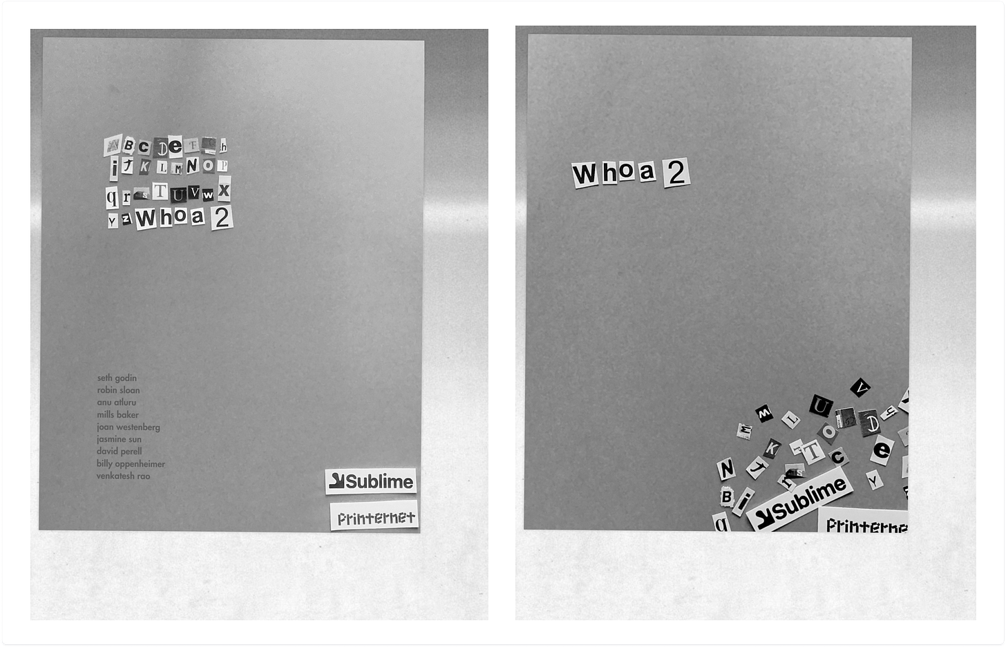 , David Perell, Robin Sloan, , , , and more) to share perspectives they’ve never put on record before.For the limited edition print zine, our friend Jake Weber has been cutting letters from old magazines and books by hand. They are human, imperfect, and laborious.